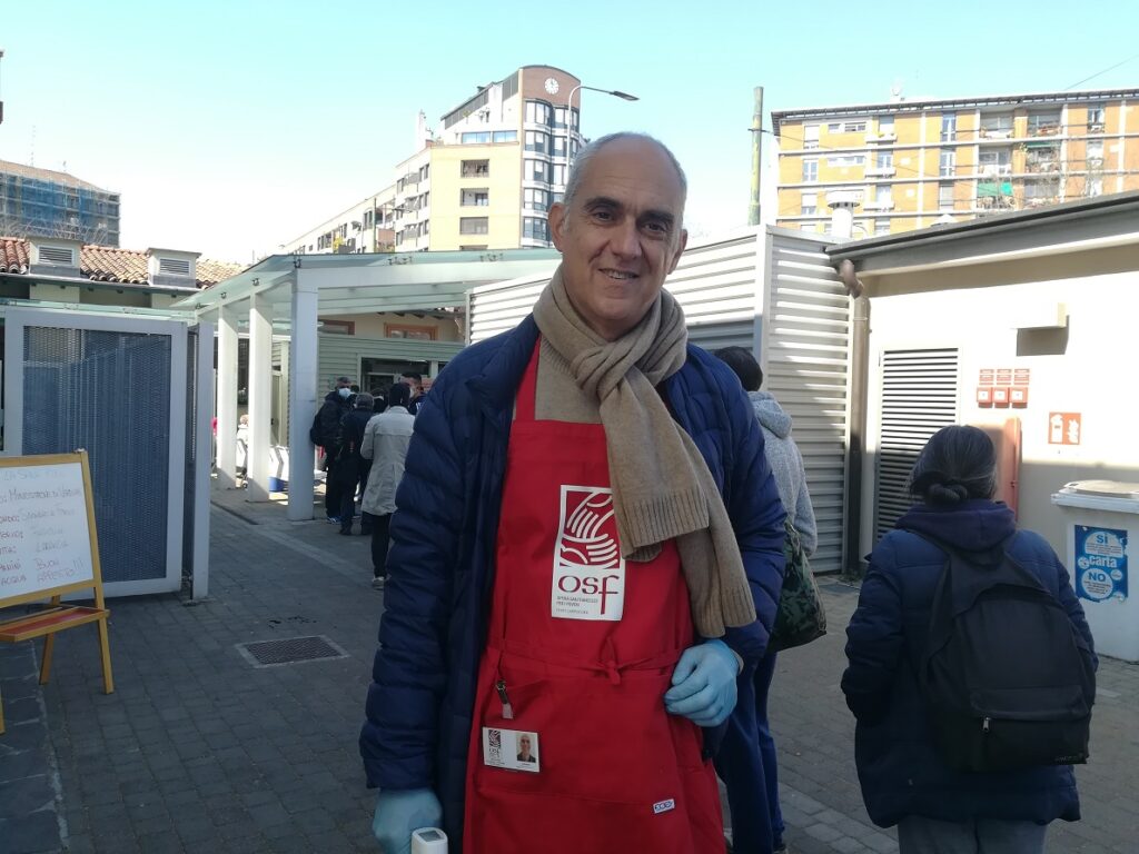 Pubblicato il 27 Marzo 2022 La Mensa di piazzale Velasquez apre alle 11:15 ma già una mezz’ora prima si crea la fila fuori. Specie in questi ultimi mesi, il numero di persone che vengono a consumare il pranzo in OSF (questa mensa è chiusa per cena) sono numerosissime. Si sono superate le 450 presenze quotidiane. Emanuele, volontario È una giornata di fine marzo, c’è un bel sole ma fa freddo. Prima di poter entrare e mangiare qualcosa di caldo occorre aspettare anche 20 minuti. E fai in tempo a congelarti. Appena varchi il cancello di ferro c’è Emanuele che ti sorride e dà a tutti il benvenuto. Così facendo nessuno si infastidisce se gli viene provata la febbre o se gli si fa notare che non indossa la mascherina o che la tiene in modo “alternativo”. Se poi la mascherina è lurida – e accade spesso – prontamente il volontario Emanuele te ne dà una nuova. Se sei un bambino, ti regala anche una caramella o un cioccolatino e intanto fa 4 chiacchiere in spagnolo maccheronico. Sì perché in questa zona i sudamericani sono molti e lo spagnolo si sente parecchio parlare tra gli ospiti. Mentre siamo in fila arriva pure un gruppo di 5 ucraini: un uomo non più giovane e delle donne insieme a dei bambini. Hanno una coccarda con i colori della loro bandiera spillata sulla giacca a vento. Non parlano italiano né inglese. Non hanno voglia di parlare, ringraziano e aspettano solo di mangiare. Una loro connazionale che vive e lavora in Italia da anni invece è agitata e si assicura che nessuno la fotografi perché teme le ripercussioni una volta tornata in patria, lo dice lei stessa. Qualcuno arriva con dei cani e li “parcheggia” in cortile prima di andare a sbirciare cosa passa il convento. Su una lavagnetta infatti fra Andrea – il responsabile del Servizio – ogni giorno scrive il menù: minestrone di verdure, sgombro al forno, fagiolini, 1 arancia, 2 panini, acqua e buon appetito! Questo martedì va così. Ci sono persone che si affacciano e se i piatti non sono di loro gusto, se ne vanno; altre invece entrano belle soddisfatte. Emanuele, 59 anni, che fino a 1 anno fa lavorava in una nota agenzia pubblicitaria, conosce molti dei volti in fila. Tanti vengono ogni giorno e quindi c’è una certa famigliarità: nomi, curiosità, stranezze di un microcosmo tutto particolare. Ogni tanto qualcuno esce dalla fila per andare a cercare fra Andrea e informarlo di chissà quali novità, oppure cerca di fregare il posto a un altro e si creano dei piccoli malumori, ma è raro. E proprio oggi è successo che dopo un battibecco, un ospite si sia pentito e abbia chiesto scusa ai volontari per aver alzato la voce: “Sai, per te non è niente, a noi invece con la vita che facciamo, poi ci dà fastidio tutto. E se uno mi passa davanti, e ho fame, mi arrabbio. Ma io sono uno mite, non è roba per me, quindi scusa.” C’è pure qualche coppia di vecchietti italiani che viene qui per risparmiare 4 soldi e magari parlare con qualcuno. Manca poco all’una e a breve la Mensa chiuderà: quasi a tempo scaduto arriva James, viene spesso in OSF a mangiare. È di Rimini, ha 19 anni e da quando ne ha 15 è scappato di casa e vive per conto suo. Ora dorme in Ortles e si mantiene facendo giocoleria in giro. Oggi dice che è una buona giornata perché qualcuno gli ha dato 20 sterline. Le metterà da parte per fare il cammino degli dei, partirà tra poco. Sembra un po’ perso, nel suo mondo. E non è l’unico forse qui in fila a sentirsi così. Ma per accedere alle Mense di OSF non occorre rispondere ad alcuna domanda, né avere alcun requisito. Se non la fame. Si fa la fila, si entra e si mangia.