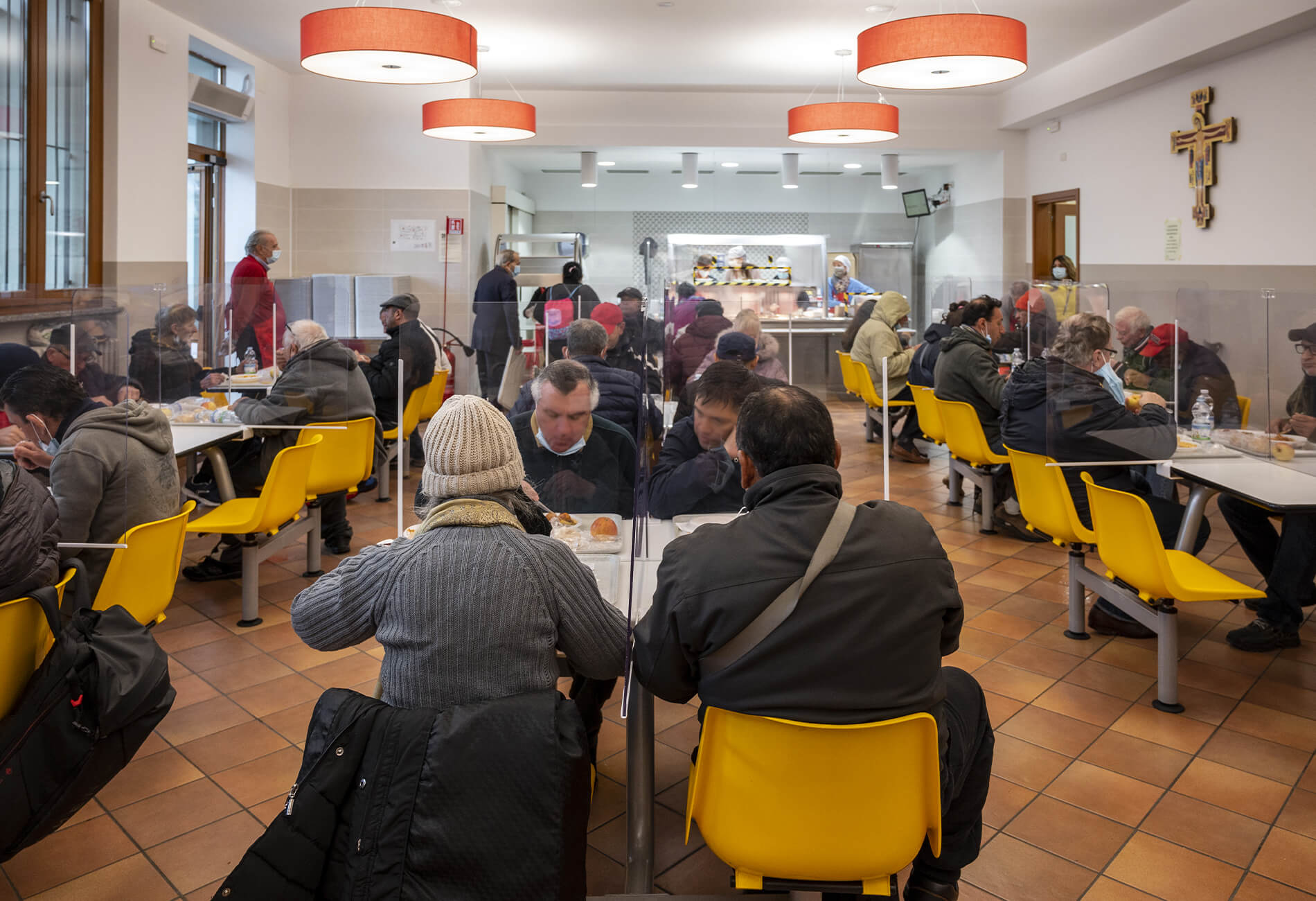 Mensa di piazzale Velasquez. Inaugurata nel 2017, si è aggiunta alla storica mensa di corso Concordia a Milano. Più piccola e raccolta, offre quotidianamente a pranzo oltre 300 pasti, tranne il sabato quando rimane chiusa. Si avvale del prezioso supporto dei volontari e si trova a fianco del Poliambulatorio di via Antonello da Messina, altro servizio fondamentale di Opera San Francesco. In questo modo OSF ha creato un polo di servizi completo, all’interno di un quartiere periferico. La Mensa di piazzale Velasquez in numeri 118.261 Pranzi 378 Media giornaliera 145 Volontari suddivisi in gruppi da 14 per ogni turno 48 Posti a sedere 4.611 Ospiti Dove si trova Via Antonello da Messina, 420148 Milano Indicazioni stradali Orari di apertura Da domenica a venerdì, tutto l’anno. Pranzo 11.15 – 13.15 Struttura 48 posti a sedereBanco self service Contatti Responsabile del servizioFra Andrea Poerio Telefono02-20.234.327 Emailfraandrea.poerio@operasanfrancesco.it Le Mense Mensa di corso Concordia a Milano